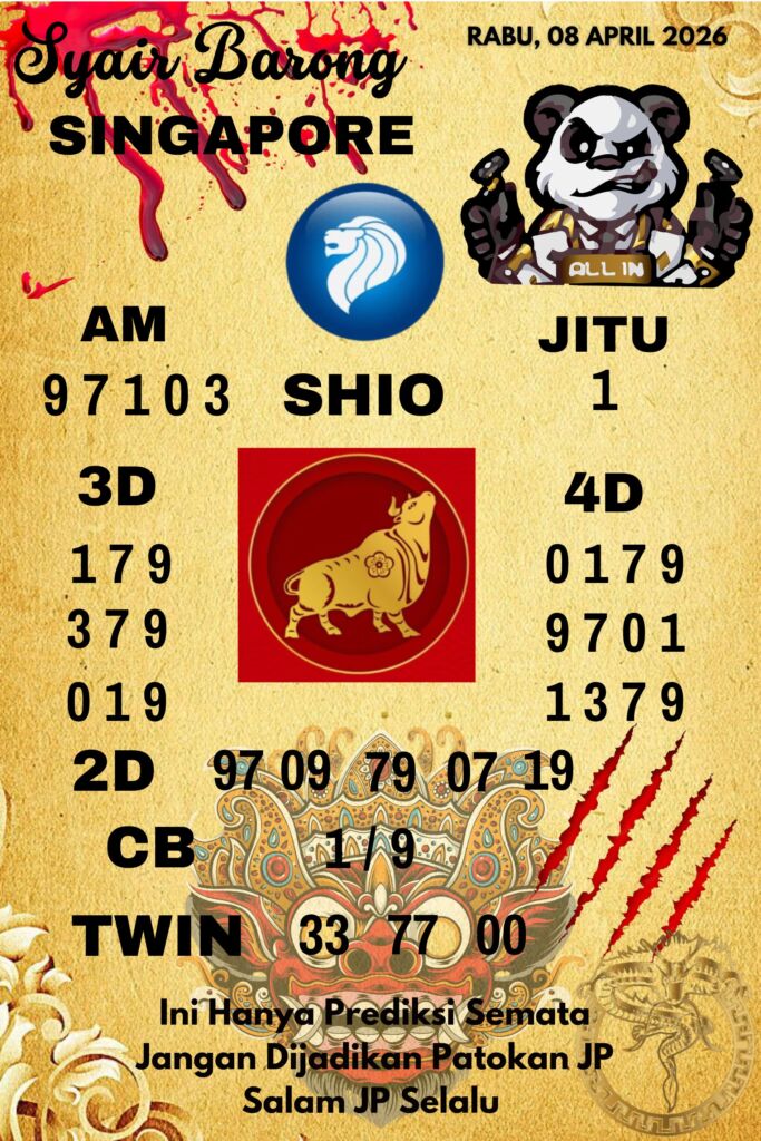 Prediksi DENSUSTOTO menyediakan Syair Togel Singapore resmi yang dapat anda saksikan dalam situs judi togel online ini. Setiap pemain judi togel online yang tidak memandang dan mengenal syair togel singapore pastilah kurang mujur buat mendapati angka keluaran togel terjitu. Lantaran itu sekarang situs judi togel online DENSUS TOTO sekarang akan memberikan anda bocoran bagaimana caranya mendapati nomor keluaran prediksi singapore dari syair togel sgp terjitu. Sekarang anda cuma perlu dan mengenal code syair singapore ini merupakan prediksi singapore yang dituang terdapat sifat code syair. Maka serius tidak bertanya-tanya jikalau sejumlah penggemar togel begitu menyintai prediksi syair togel ini. Buat prediksi syair singapore dapat dipakai buat bahan ketidaksamaan mencari angka jitu yang bisa keluar pada hari ini. Karenanya berhati-hatilah selalu pada setiap terdapat dipicu di situ dapat anda angka bermain 2D, 3D dan 4D