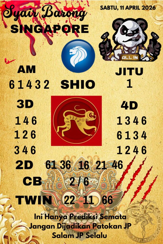 Prediksi DENSUSTOTO menyediakan Syair Togel Singapore resmi yang dapat anda saksikan dalam situs judi togel online ini. Setiap pemain judi togel online yang tidak memandang dan mengenal syair togel singapore pastilah kurang mujur buat mendapati angka keluaran togel terjitu. Lantaran itu sekarang situs judi togel online DENSUS TOTO sekarang akan memberikan anda bocoran bagaimana caranya mendapati nomor keluaran prediksi singapore dari syair togel sgp terjitu. Sekarang anda cuma perlu dan mengenal code syair singapore ini merupakan prediksi singapore yang dituang terdapat sifat code syair. Maka serius tidak bertanya-tanya jikalau sejumlah penggemar togel begitu menyintai prediksi syair togel ini. Buat prediksi syair singapore dapat dipakai buat bahan ketidaksamaan mencari angka jitu yang bisa keluar pada hari ini. Karenanya berhati-hatilah selalu pada setiap terdapat dipicu di situ dapat anda angka bermain 2D, 3D dan 4D
