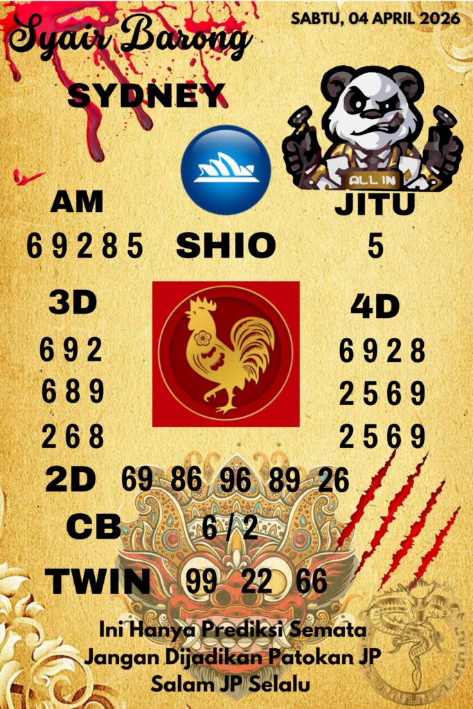 Prediksi DENSUSTOTO menyediakan Syair Togel Sydney resmi yang dapat anda saksikan dalam situs judi togel online ini. Setiap pemain judi togel online yang tidak memandang dan mengenal syair togel sydney pastilah kurang mujur buat mendapati angka keluaran togel terjitu. Lantaran itu sekarang situs judi togel online DENSUS TOTO sekarang akan memberikan anda bocoran bagaimana caranya mendapati nomor keluaran prediksi sydney dari syair togel sgp terjitu. Sekarang anda cuma perlu dan mengenal code syair sydney ini merupakan prediksi sydney yang dituang terdapat sifat code syair. Maka serius tidak bertanya-tanya jikalau sejumlah penggemar togel begitu menyintai prediksi syair togel ini. Buat prediksi syair sydney dapat dipakai buat bahan ketidaksamaan mencari angka jitu yang bisa keluar pada hari ini. Karenanya berhati-hatilah selalu pada setiap terdapat dipicu di situ dapat anda angka bermain 2D, 3D dan 4D
