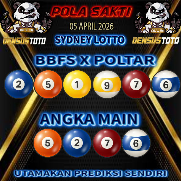 Prediksi DENSUSTOTO menyediakan Syair Togel Sydney resmi yang dapat anda saksikan dalam situs judi togel online ini. Setiap pemain judi togel online yang tidak memandang dan mengenal syair togel sydney pastilah kurang mujur buat mendapati angka keluaran togel terjitu. Lantaran itu sekarang situs judi togel online DENSUS TOTO sekarang akan memberikan anda bocoran bagaimana caranya mendapati nomor keluaran prediksi sydney dari syair togel sgp terjitu. Sekarang anda cuma perlu dan mengenal code syair sydney ini merupakan prediksi sydney yang dituang terdapat sifat code syair. Maka serius tidak bertanya-tanya jikalau sejumlah penggemar togel begitu menyintai prediksi syair togel ini. Buat prediksi syair sydney dapat dipakai buat bahan ketidaksamaan mencari angka jitu yang bisa keluar pada hari ini. Karenanya berhati-hatilah selalu pada setiap terdapat dipicu di situ dapat anda angka bermain 2D, 3D dan 4D